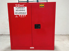 【備注】產品有紅(紅色指示可燃液體)、黃(黃色指示易燃液體)、藍(藍色指示弱腐蝕性液體)三種顏色,三種顏色的尺寸相同,儲放化學品類型不同。在儲存化學品的過程中,使用有色標簽來識別、整理、分開各種易燃或危險液體。這樣做同時又能在發(fā)生火災時方便消防人員識別危險。如果存放的是OSHA1910.106所提到的可燃的或易燃的化學品,存儲設備建議采用基于美國防火協(xié)會第30條規(guī)定(NFPA 30)或者統(tǒng)一火災法規(guī)79條(UFC 79)的規(guī)范所設計的防火安全柜。
